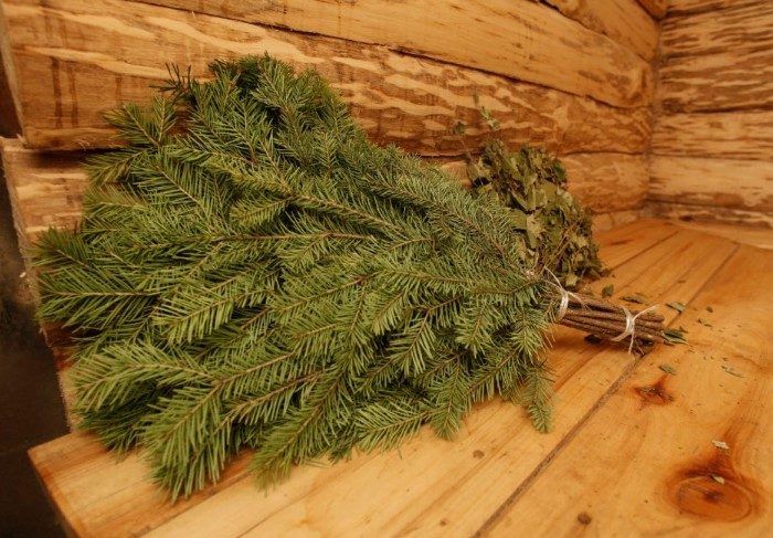 Если правильно подготовить еловые ветви, они перестанут быть колючими и превратятся в эффективный массажер. Лучше всего подойдет свежая пихта. Иголки не так сильно колются, как у ели, сосны, не уступают по количеству эфирных масел и не осыпаются. Отберите крупные ветки, закипятите воду, окуните в нее хвою и подождите на час, чтобы веточки смягчились. Свяжите их и получится отличный банный веник.