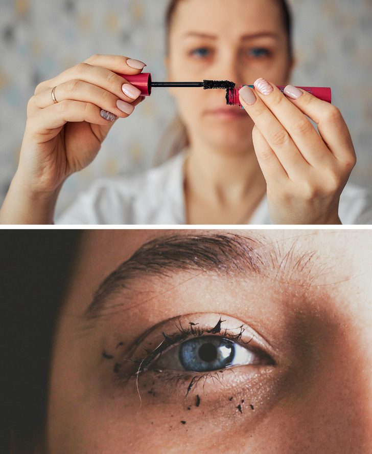 У привычки дергать щеточку в тюбике туши целый ряд недостатков. Из-за этого движения в тюбик нагнетается воздух, что провоцирует скорое высыхание туши. Это же, в свою очередь, приводит к комкованию и отслаиванию средства, и впоследствии оно ведет себя непредсказуемо при использовании. На самом же деле, чтобы набрать на щетку побольше средства со стенок, достаточно сделать ею несколько круговых движений — да, все действительно так просто.