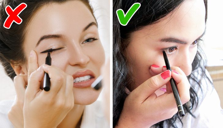 Прикрываете веки, когда пытаетесь нарисовать «кошачий глаз»
