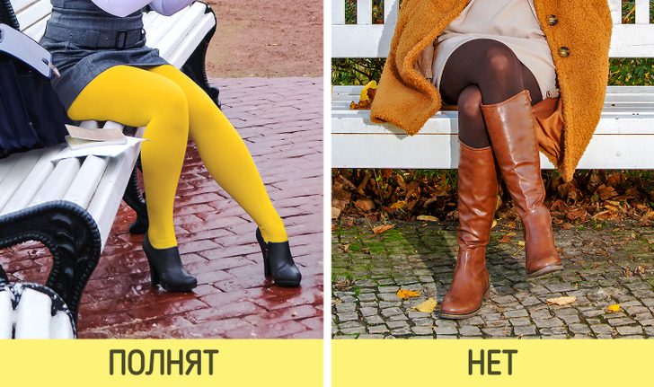 Неумело подобран оттенок. Как избежать: берите колготки в тон кожи, которые практически незаметны на ногах.