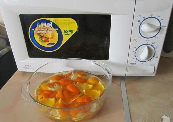 Апельсиновая кожура. Не спешите выбрасывать апельсиновые корки после очистки фрукта, так как ими можно почистить микроволновку быстро и эффективно!