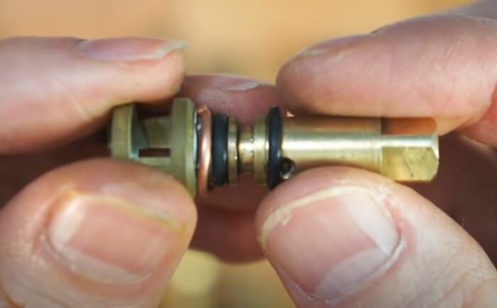 В нижней части штока будет располагаться фторопластовое кольцо. Именно оно в подавляющем большинстве случаев и является главной причиной неисправности всей системы. Лучше всего осуществить его замену на медную шайбу. Однако, если такой под рукой нет, то можно связать из тонкой медной проволоки колечко и осуществить замену. Для создания кольца рекомендуется сделать несколько витков проволоки на сам шток.