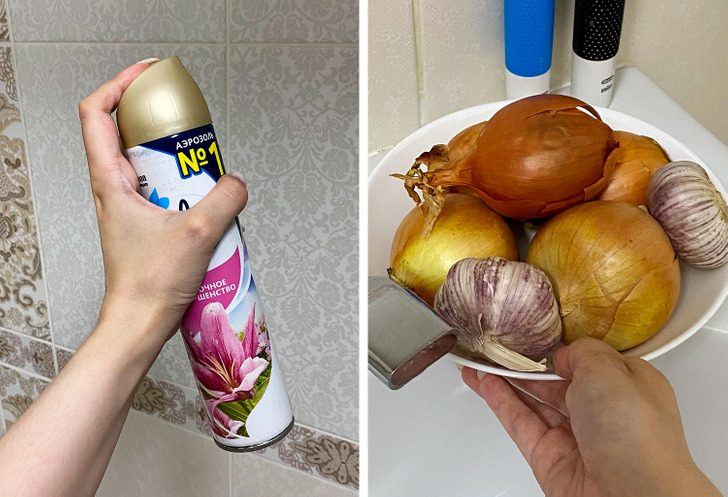 Для многих привычно использовать магазинные освежители воздуха. Но мало кто знает, что с неприятными запахами в туалете, особенно если в нем плохая вентиляция, отлично борется и обычный лук. Попробуйте поместить в комнате блюдо с луком — овощ впитает в себя нежелательные ароматы и освежит воздух.