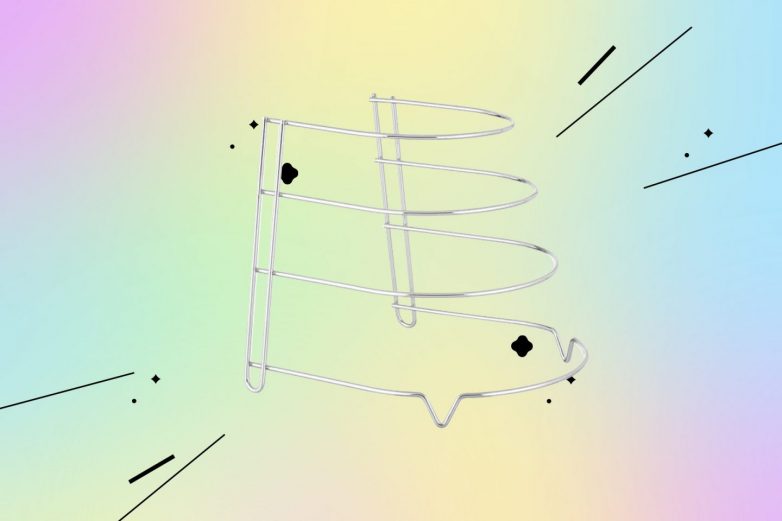Металлическая полка-лесенка поможет удобно расположить сковородки, противни, крышки и разделочные доски в большом кухонном шкафчике. А ещё, чтобы найти нужную сковороду, не придётся доставать всю посуду.