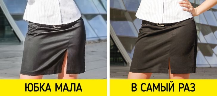 Взгляните на разрез, если он предусмотрен: когда вы стоите, его края не должны расходиться. Подол юбки должен идти строго параллельно полу. Если, конечно, у нее не ассиметричный крой.