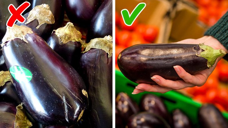 Плодоножка должна быть зеленого цвета. Если она коричневая или сухая, значит, плод хранился слишком долго и может быть испорчен. Стоит внимательно осмотреть баклажан в этом месте на предмет наличия плесени или вмятин.
