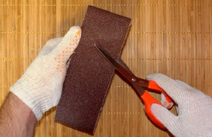 Наждачка с зернистостью 120-180 — действенное средство для заточки ножниц. Возьмите бумагу и сделайте на ней 5-6 надрезов. Поскольку наждачка покрыта зернышками только с одной стороны, переверните материал и повторно проделайте еще 5-6 надрезов. Остатки шлифовки сотрите мягкой тряпочкой. Проверьте степень заостренности ножниц на картоне, а потом приступайте к работе.