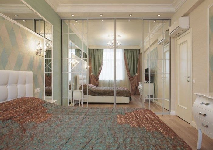 Самый простой способ визуально расширить помещение — повесить зеркало или даже несколько. Лайфхак: расположите отражающую поверхность на противоположной стене от окна. Так свет будет «отзеркаливаться» и в комнате станет уже не так мрачно. Также можно украсить интерьер другими изделиями с зеркальными поверхностями. Главное — не расставляйте их все в одной комнате, иначе помещение превратится в гнездо сороки, а для интерьера важны гармония и баланс.