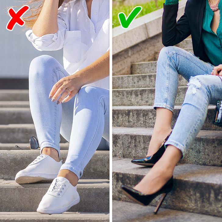 Современный ритм жизни требует комфорта, поэтому многие женщины закинули куда подальше обувь на каблуках. Но ведь часто она смотрится более выигрышно, чем обувь на плоском ходу. Каблуки визуально удлиняют ноги, за счет чего образ становится собранным и изысканным. Подойдет любой вид каблука: шпилька, танкетка, толстый каблук.