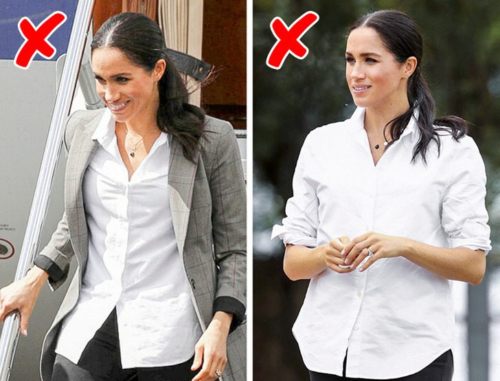 Рубашка навыпуск делает образ слишком повседневным и скучным, а иногда и вовсе неряшливым. Можно заправлять рубашку полностью или попробовать частично выпуститьее края сзади или сбоку. Образ станет более собранным и интересным.