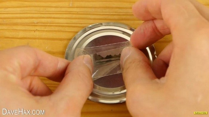 Дело за жестью. Подойдёт любая консервная банка. Отрежьте крышку, а на неё наклейте скотч с отпечатком ключа.