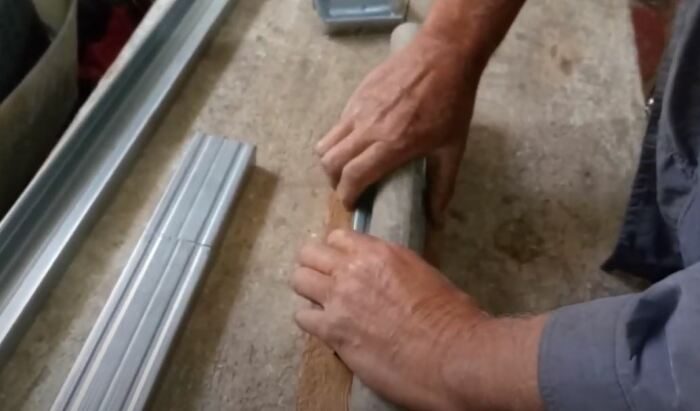 Соединитель готов! Теперь его можно вставлять между двумя сращиваемыми фрагментами профиля. Для большей надежности следует прижать ребра жесткости в нескольких местах по краям. Делается это все также при помощи плоскогубцев. Сам по себе такой профиль никогда не рассоединится.