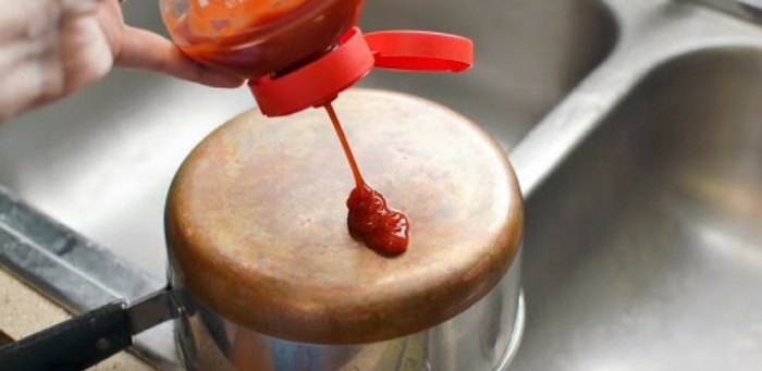 Удивительно, но кетчуп отлично справляется с различными, даже самыми серьезными загрязнениями на посуде. Нужно просто нанести толстый слой кетчупа на загрязненные участки посуды и подержать минут 10, после чего протереть с помощью жесткой части на губке для мытья посуды. Копоть, грязь и застарелые жировые отложения отойдут без особых усилий, а кухонная утварь приобретет красивый блеск и сияние.