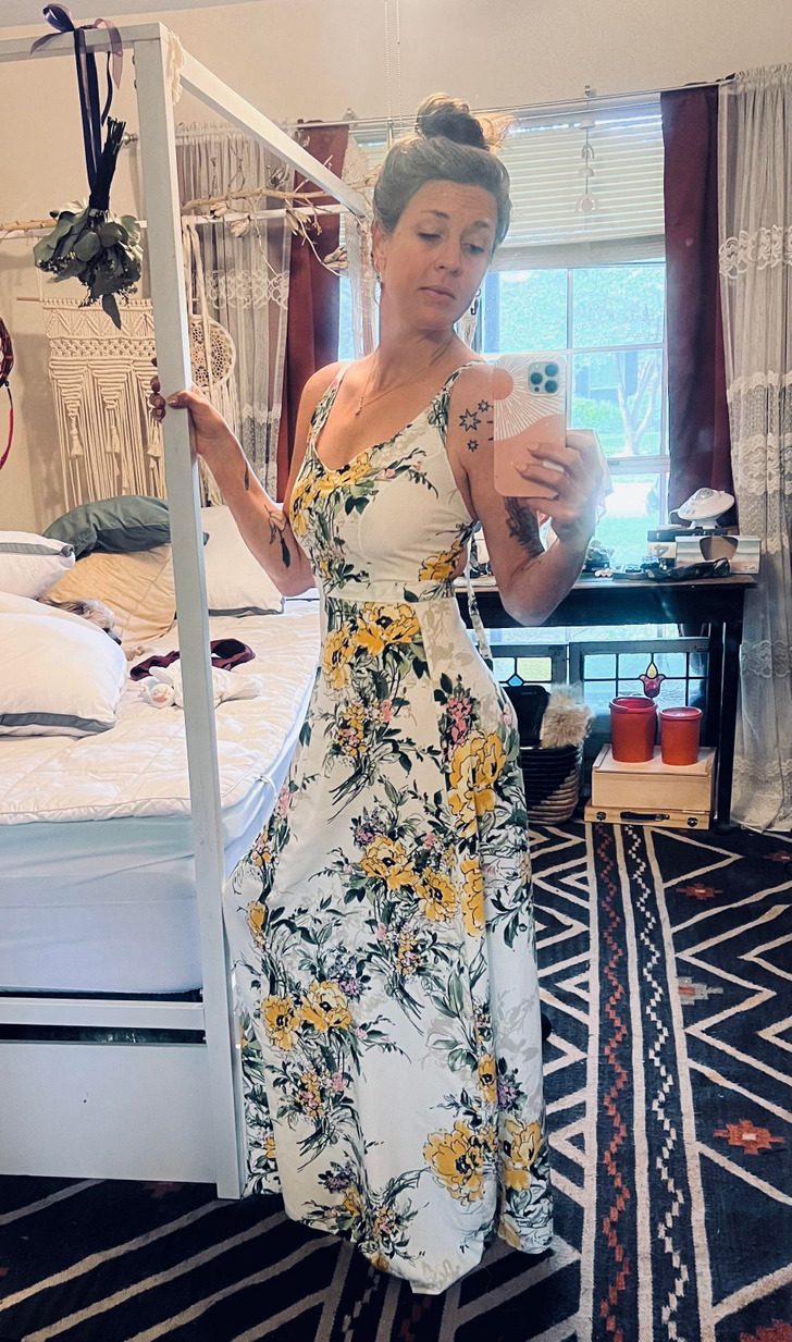 «Я клонировала свое любимое платье, купленное в магазине. Юбка косого кроя, топ на бретелях»