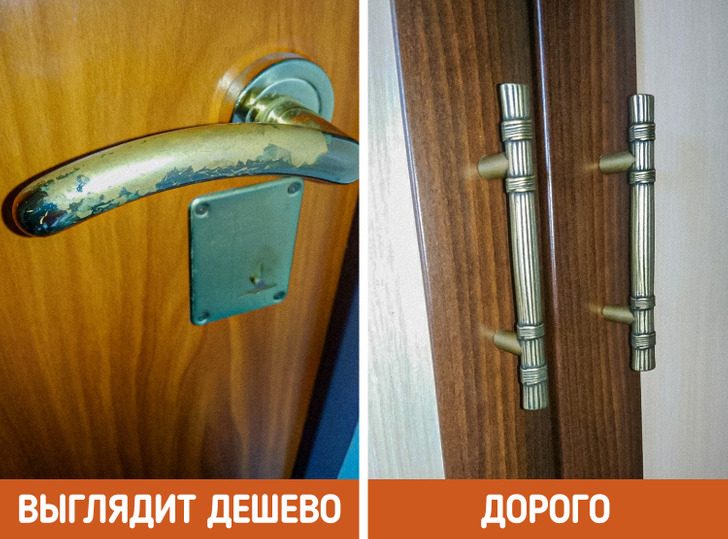 Ручки на дверях и на мебели быстро могут стать неэстетичными, потускнеть или покрыться царапинами. Чтобы не менять весь интерьер и при этом освежить вид квартиры, достаточно просто обновить фурнитуру. По мнению экспертов, наиболее элегантные варианты — матовые ручки из латуни или меди.