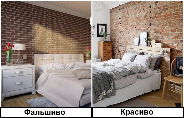 Здесь ситуация обстоит так же, как и с поддельной обувью или аксессуарами. Имитация всегда выглядит дешево, портит интерьер. Поэтому старайтесь игнорировать обои «под бетон», напольное покрытие «под паркет» и кухонную столешницу «под мрамор». Намного уместнее и красивее будут смотреться простые, самодостаточные материалы, которые не выдают себя за что-то другое.