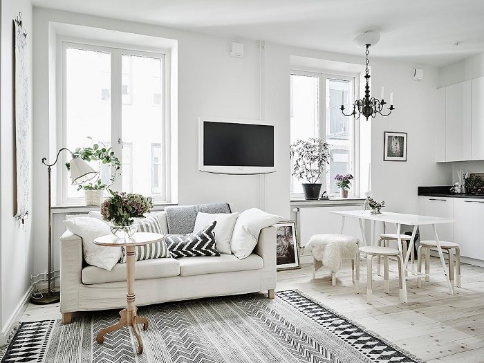 Разноцветный текстиль, обои с принтом, мебель с узором на ножках – сейчас все это чуть ли не моветон, ведь в моде однотонные интерьеры. Считается, что они выглядят красиво, стильно, лаконично и в них легче вписать любой декор. И это действительно так, за исключением одного небольшого нюанса – если не предусмотреть цветовые акценты, квартира будет выглядеть блекло и скучно.