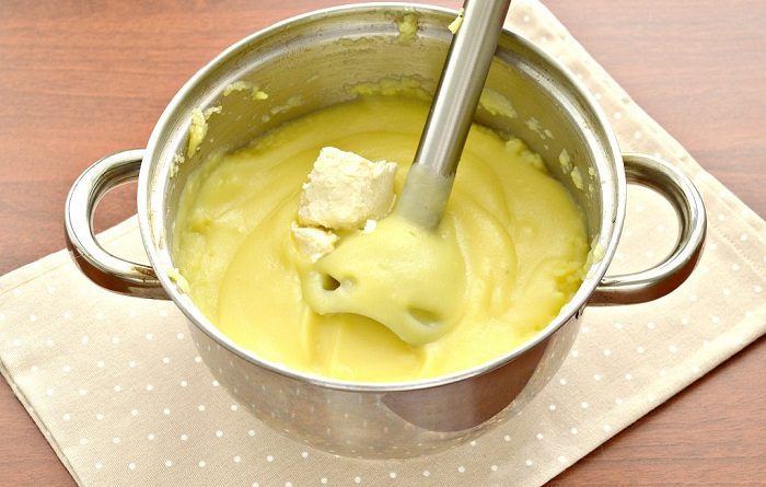 Самый простой и проверенный способ – слить с готового картофеля воду и подсушить его на плите в той кастрюле, в которой он варился. Это нужно для того, чтобы ушла оставшаяся влага и овощ смог лучше впитывать в себя масло, молоко и сливки. Кстати, они должны быть комнатной температуры.