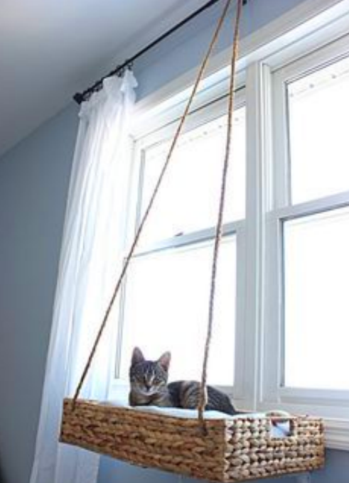 Все, что вам нужно для этого, — легкая корзина с прочными стенками, кронштейны для крепления полки и подстилка. Установите кронштейны таким же образом, как и в случае с подоконником или под подоконником. Затем установите корзину на кронштейны полки, закрепив ее на месте. Для этого типа оконных насестов лучше всего подходит деревянный ящик или ящик из другого твердого материала. Не забудьте положить в коробку или корзину любимую подстилку вашей кошки.