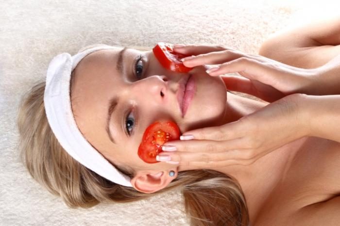 Очень хороша такая маска для проблемной кожи: снимает воспаление сразу же! Весь секрет в том, что кислотность помидор способствует установлению правильного pH-баланса на коже. Также витамины А, С, Е и В6, присутствующие в томатах, повышают тонус кожи, разглаживают морщины, улучшают кровообращение и цвет лица.