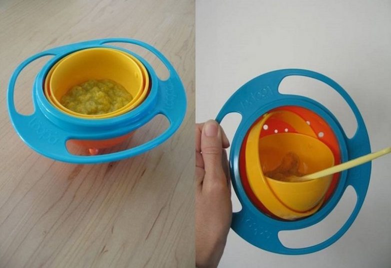 Когда в доме есть маленькие дети, нужно только успевать за ними подбирать игрушки, посуду, телефоны и прочие предметы, которые они сначала хватают, а потом роняют. И ничего страшного в этом нет, но лишь до тех пор, пока дело не доходит до еды, разбросанной по всей кухне. Предотвратить катастрофу поможет тарелка-непроливайка, которая крутится во время движения и удерживает пищу на месте. Кстати, она подойдет не только для малышей, но также деток постарше. Даже если ребенок попросить взять с собой тарелку в спальню или в гостиную, вы сможете смело разрешить, на 100% будучи уверенными, что еда не окажется на диване либо кровати.