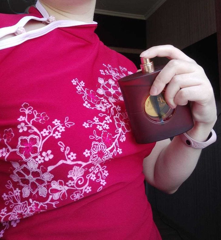 Обычно парфюм не пачкает одежду, но некоторые ингредиенты в составе духов могут привести к выцветанию ткани. Чтобы избежать этого, стоит сначала нанести парфюм на кожу, дождаться, когда он высохнет, и лишь затем одеваться.
