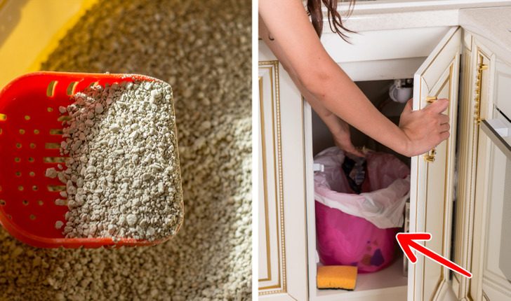 2. Наполнитель для лотка в качестве устранителя запахов в мусорном ведре