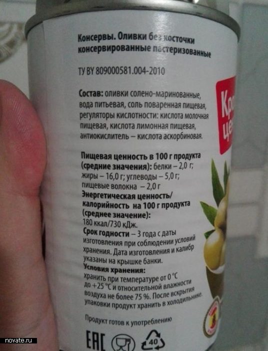 На большинстве баночек со шпротами, мясными консервами, оливками, фасолью, горошком, сладкой кукурузой указан температурный диапазон от 0 до +23 и даже до +25 градусов. Хранить в холодильнике, разумеется, можно, но зачем занимать полезное пространство, если комнатная температура, как правило, не превышает допустимую норму? Кладовка, шкаф на балконе, любая полка в кухне не менее подходящие варианты.