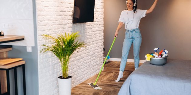 Музыка поднимает настроение, помогает ритмично двигаться и увеличивает продуктивность. Всё это пригодится не только на тренировках, но и во время уборки. Составьте плейлист из энергичных композиций, которые будут задавать темп вашим движениям, и начинайте мыть полы. Если хочется, можно сделать перерыв и просто потанцевать. Так вы будете меньше думать о том, что не любите уборку, и быстрее справитесь с работой.5. Устройте цифровой детокс