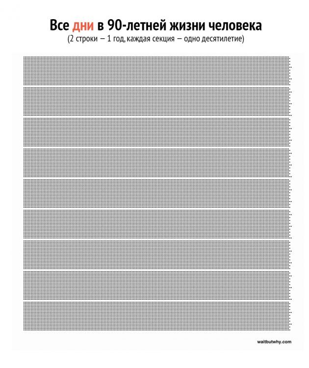Писатель Тим Урбан пошёл ещё дальше. Он разбил 90-летнюю жизнь на дни и сделал календарь.