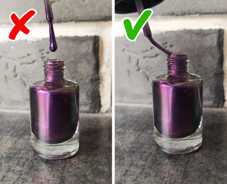 Многие используют жидкость для снятия лака в качестве разбавителя, чтобы вернуть старому загустевшему лаку прежний вид. Но ацетон, наоборот, растворяет лак и никак не поможет получить первоначальную текстуру.