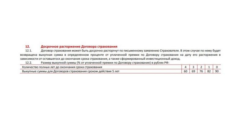 Договор не получится досрочно расторгнуть без потерь. Страховые компании требуют согласиться с выкупной суммой. Допустим, в течение первого года не вернут ничего от внесённых денег, на второй — 50%, а забрать всё без потерь если и удастся, то лишь в самом конце.