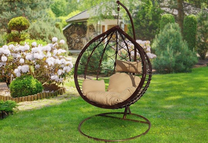 Оптимальный материал для изготовления кресел-коконов — натуральный ротанг. Также есть изделия из металла, которые отлично дополнят садовую лужайку или патио. А на террасе или веранде установите «гнездо» из искусственного ротанга.