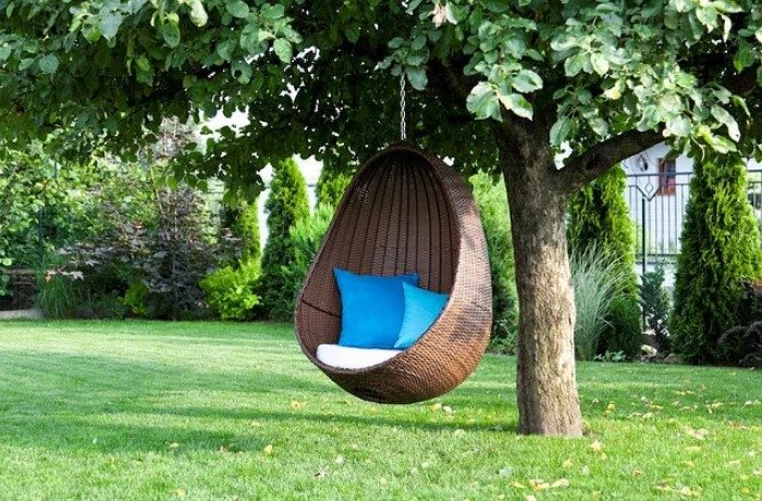 Кресло в виде гнезда или кокона можно расположить на веранде, в беседке или даже подвесить к потолку. В последнем случае не удастся передвигать «гнездо» по участку. Напольные же коконы — отличный вариант для одиночного сидения, они выдерживают любой вес и легко переносятся по территории.