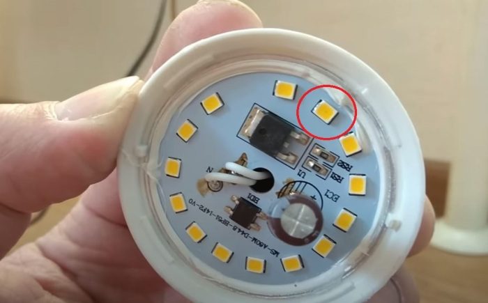 Чаще всего светодиодные лампочки приходят в негодность по причине того, что в них перегорают те самые диоды. И что еще более вероятно – какой-то один диод. Дело в том, что у большинства моделей лампочек диоды заключены в единую цепь, а потому, когда перегорает один, перестают работать и все остальные.