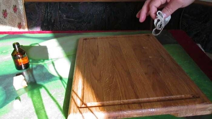 Одним из лучших вариантов на сегодняшний день неожиданно является вазелиновое масло. При условии, что посчастливиться найти его в промышленном магазине. Продают такое и в аптеках, однако только маленькими ампулами и по завышенной цене. Средний оптовый ценник вазелинового масла составляет около 350 рублей за литр. Для сравнения, тот же литр, но тикового масла обойдется уже около 900 рублей. При этом, благодаря содержанию парафина в жидком виде вазелиновое масло является лучшей защитой от воды для деревянных изделий. Так же стоит помнить о том, что после нанесения вазелинового масла на деревянную поверхность, последнюю нужно будет дополнительно отполировать салфеткой через 15-20 минут после обработки.