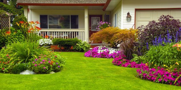 Поэтому под грядки имеет смысл выделить небольшой участок. А на остальной площади обустроить цветник, поставить качели и, конечно же, засеять красивый зелёный газон.