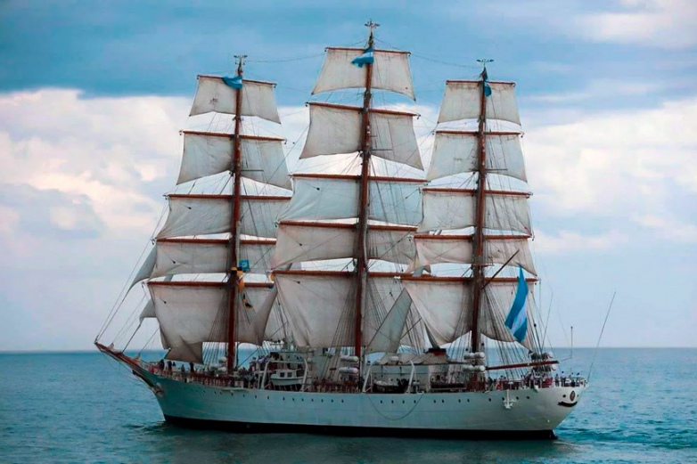 Однако реальным прототипом картинки стал аргентинский учебный фрегат «Либертад». Судно спустили на воду в 1956 году. До сих пор оно удерживает звание одного из самых вооруженных и крупных парусников в мире. За все время своего существования фрегата аргентинцы проплыли на нём 1,5 млн. км. и побывали в 60 странах мира. Однако, в порту Архангельска «Либертад» никогда не был.