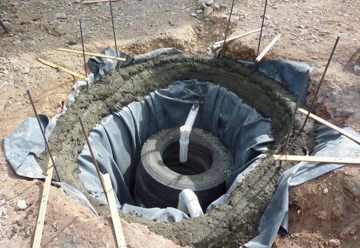 Если выгребная яма нужна только в определенные сезоны, а не круглогодично, можно соорудить летний слив. Для него подойдут старые покрышки, доски и металлические, пластиковые бочки. Однако учтите, что металл со временем покроется ржавчиной, а бочка рискует прогнить. К тому же, по сравнению с пластиком, бочка и древесина сильнее впитывают и распространяют неприятные ароматы, особенно в жаркую погоду. В такой ситуации наиболее оптимальный вариант — это покрышки. Главное — герметично их скрепить, чтобы не было протечек.