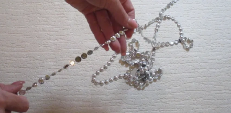 Торец картона я спрятала под другие стразы. Далее сделала петельку с обратной стороны зеркала. Петельку сделала из тех же страз которыми оклеивала торец картона.