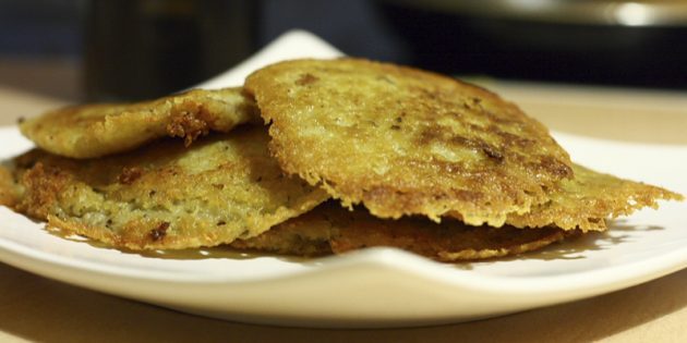 Выкладывайте получившееся тесто на хорошо разогретую и политую растительным маслом сковороду. Удобнее всего это делать столовой ложкой, немного прижимая ей каждый блинчик сверху. Обжаривайте до золотистой корочки с обеих сторон.