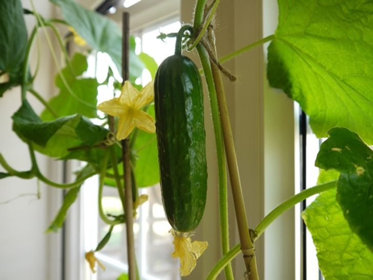 Чтобы выращивать на подоконнике или на балконе огурцы, стоит присмотреться к гибридным сортам, которые помечаются значком F1. Если для растения созданы все условия, оно может дать 3-4 десятка плодов. Здесь придется немного повозиться с рассадой, зато после пересадки в ящики надо будет только поливать и подрезать усики.