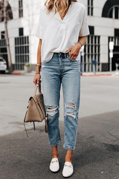 • Если вы имеете не только шикарные формы, но и высокий рост, то фасон boyfriend jeans можно смело добавить в ваш гардероб. Если же у вас низкий рост, то рекомендую сочетать джинсы с каблуками:
