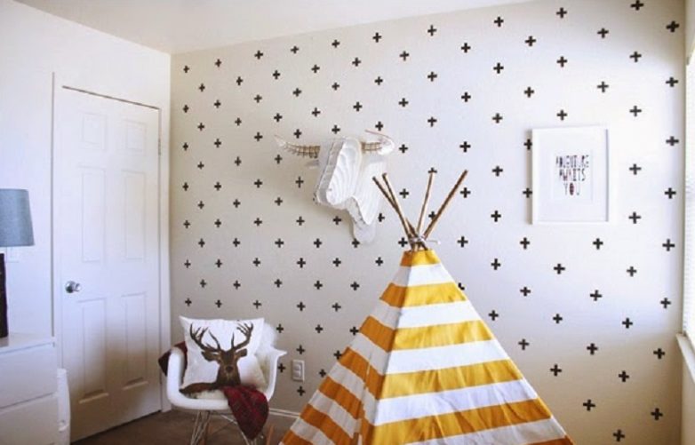 Шаблон для декора стен можно выбирать на свой вкус, экспериментировать с различными цветами.