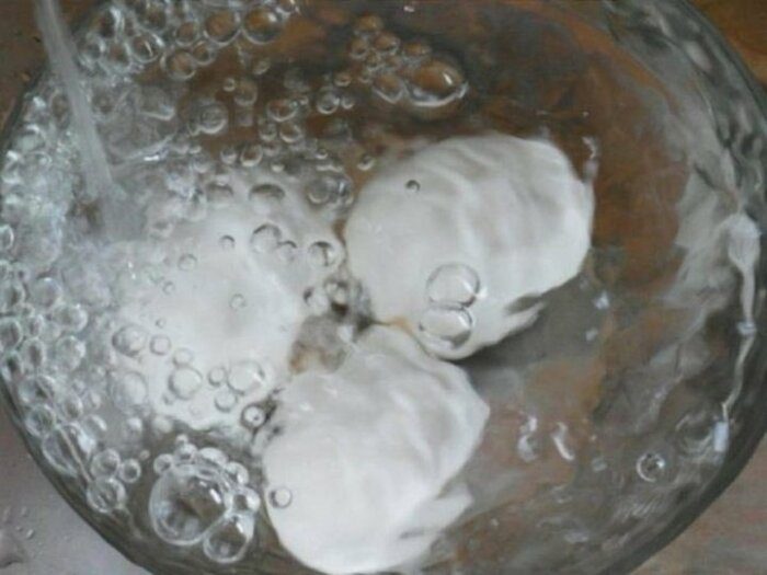 Многие для этого помещают готовый продукт под холодную воду. Но в случае с только купленными яйцами этого недостаточно. Существует более действенный способ, который использовался поварами в столовых во времена Советского Союза. Эта хитрость позволяла за несколько минут очистить большое количество яиц без каких-либо сложностей.