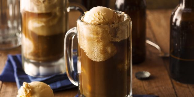 Смешайте масло или сливки с карамельным сиропом, специями и мороженым до однородной массы. Уберите в морозильную камеру на 10–15 минут. Налейте в стакан «крем‑соду», достаньте сливочный микс и медленно добавьте в стакан. Чтобы слои не смешались, можно наливать топпер тонкой струйкой по оборотной стороне ложки.