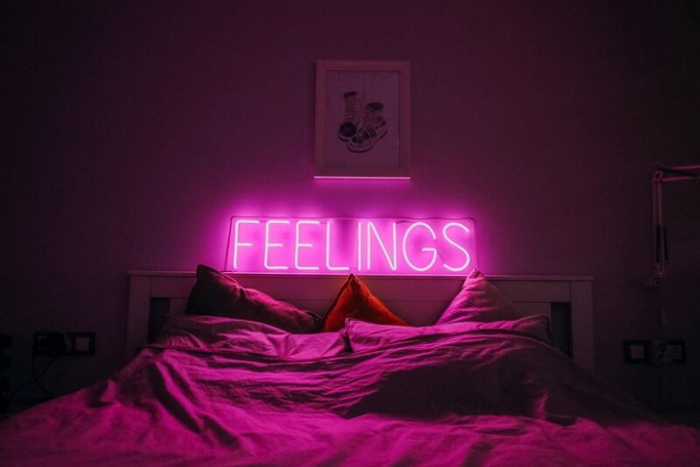 Светящиеся надписи – идея не новая, но еще и не избитая в современных интерьерах. Для ее реализации необходима более-менее пустая однотонная стена или с кирпичной кладкой. Сделать надпись можно с помощью электрической гирлянды и фиксирующих клипс. Готовые надписи с неоновой подсветкой можно найти на популярной китайской платформе или в крупных маркетплейсах (Wildberries, Ozon). Помимо эстетики неоновые надписи и буквы выполняют еще и роль ночника.