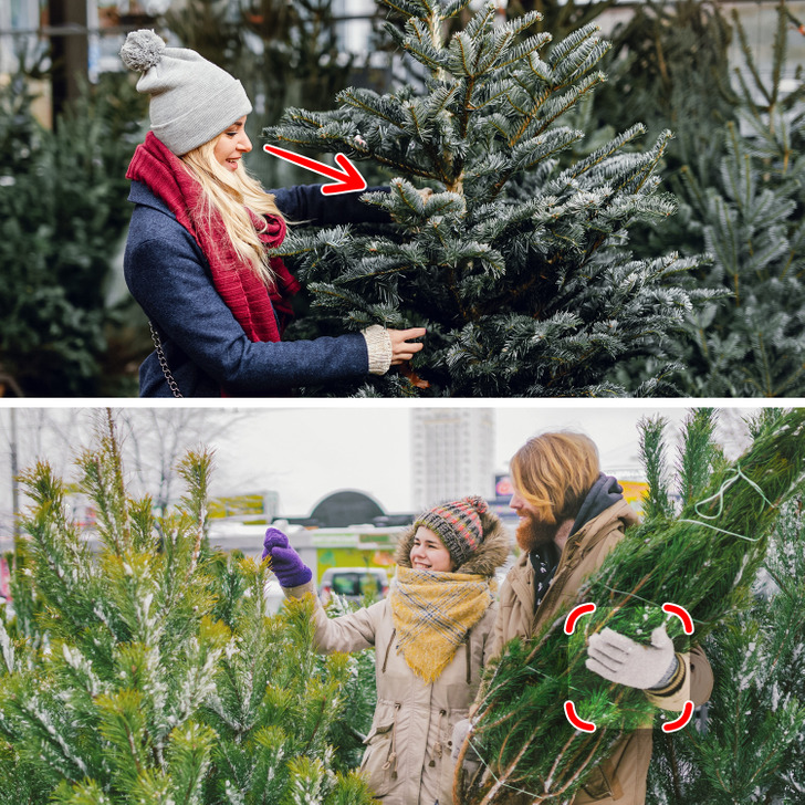 Идеально будет найти елку с достаточным расстоянием между ветвями, чтобы игрушки и украшения свободно свисали, а не ложились на нижнюю ветку. Лайфхак: возьмите с собой небьющуюся елочную игрушку и «примерьте» ее на разные елки, чтобы понять, достаточно ли места для украшений.