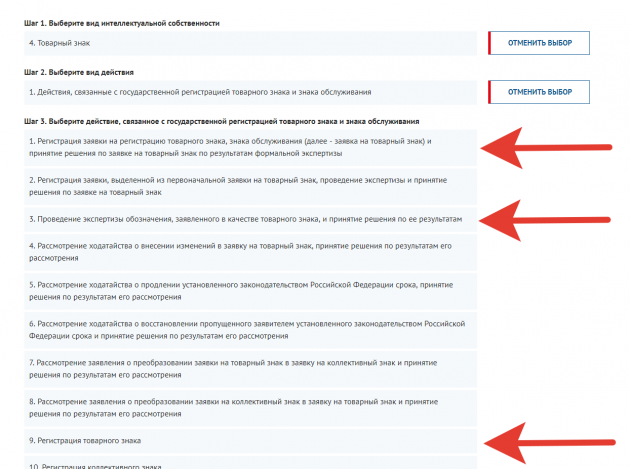На специальном калькуляторе можно посчитать размер трёх основных пошлин за регистрацию товарного знака. Остальные, скорее всего, вам никогда не пригодятся