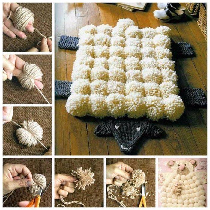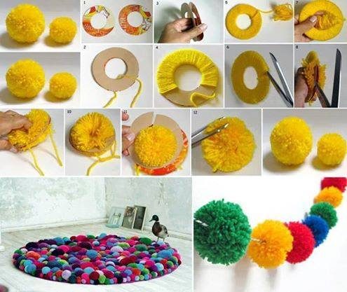 Помпоны можно делать разными способами, и здесь они показаны. Можно делать игрушки, сувениры, коврики, пуфики, что подскажет фантазия и эти замечательные иллюстрированные уроки. И, конечно, можно и нужно привлечь детей к совместному творчеству, они будут в восторге.